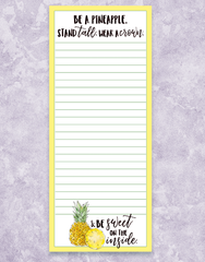 Stay organized with our Be A Pineapple Shopping List Pads. These 3.75" x 9" list pads come in a package of 60 sheets, with a magnet for your convenience. They are perfect for all your notes.