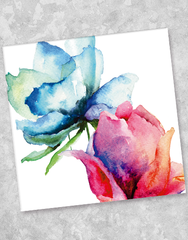 Our Big Blossoms beverage napkins are great for everyday or any special occasion. These 5" x5" folded, 3-ply beverage napkins have a brightly colored watercolor painting of two lovely blossoms.