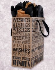 MIx it up and tell them Happy Birthday in a variety of ways with our Birthday Font List gift bags! This Garden Size (10" x 12") bag is printed on brown kraft stock and has a black grosgrain handle. Keep it natural with our Kraft & Black (T-313) or add a pop of color with our Dot Jumble (T-275) scalloped tissue paper collections for that perfect finishing touch.