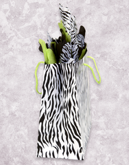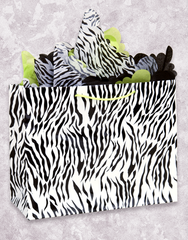 Every zebra has a unique set of stripes, let your gift stand out with the use of our Black & White Zebra gift bag. This market size (13"x10"x5") is a matte finish bag with a varnish treatment and a classic rope style handle.