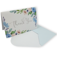 Our Blue Blooms thank you note cards are printed on a premium white uncoated stock. Includes matching light blue envelopes. These note cards are packaged in a set of 16. Great for your personal note writing or as a thoughtful gift.