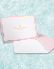 Our Blushing Heart note cards are printed on a white uncoated stock,with gold foil accents and a light pink envelope. These note cards are packaged in a set of 14. Great for you personal note writing or as a thoughtful gift.