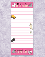 Stay organized with our cute Cats Are Like Chips Shopping List Pads. These 3.75" x 9" list pads come in a package of 60 sheets, with a magnet for your convenience. They are perfect for all your notes.