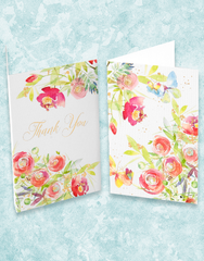 Our Charming Blooms Deluxe Note Card Sets come with 2 designs, 8 of each per package. They are printed on an uncoated stock with gold foil accents. These note cards are packaged in a set of 16 with a printed box and lid. Coordinating green envelopes with a printed liner are included. Great for your personal note writing or as a thoughtful gift.