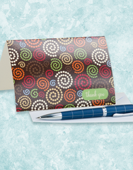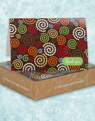 designed with you in mind. Warm rich colored spirals pattern adorn this card which is perfect for anyone you need to tell "thank you". Cards are packaged with white envelopes in an