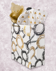 Give your next gift a trendy look with our fabulous Chic Circles Gift Bag. This Garden Sized (10" x 12" x 5") gift bag is on a matte finish. It's topped off with gold foil accents and a black and gold twisted handle. It's perfect for any gift.