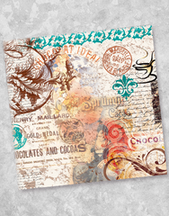 Our Chocolat Beverage Napkins evoke a sense of delicious European travel. Elegant swirls and vintage advertising in teal, orange, and chocolate colors cover these 5" x 5" folded, 3-ply napkins that are ideal for every day, a special picnic, or many occasions.