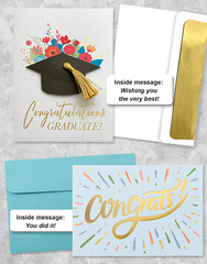 Let your Graduates be celebrated with this Graduation and Congratulations collection of 8 Greeting cards. Perfect for High School, or College Graduation, and life’s moments that need to be recognized with a special Congrats.