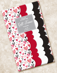 Add some cute fun to your gift with our Whimsical Hearts Tissue Paper Collection. Our exclusive scalloped edge tissue paper is also great for paper crafts and special projects. The collection contains 24 sheets of quality tissue paper, the fun heart pattern, plus coordinating solids in red, black and white. Sheets measure 19" x 25" for a total of 79.17 square feet of tissue.