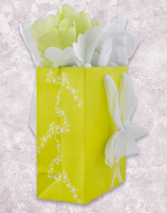 Dreaming of Paris? Our Eiffel gift bag will put you in just the right mood with it's simplicity and bright pop of color. This studio size (8.5"x10"x4") has a matte finish and a white tulle ribbon handle tied in a bow in front. Pair it with our Fretwork Scalloped Tissue Paper (T-316) for just the right finishing touch.