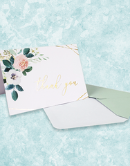 Our Elegant Breeze note cards are printed on a white uncoated stock,with gold foil accents and a sage envelope. These note cards are packaged in a set of 14. Great for you personal note writing or as a thoughtful gift.