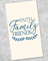 Welcome your guests with our Faith, Family, Friends Navy Guest Towel Napkins. These 4.375" x 7.875", 3-ply guest towel napkins can be used as a dinner napkin or lovely hand towel for the powder room.