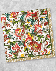 Bring a touch of elegance to your next gathering with this classic old world pattern. These 5" x 5" folded, 3-ply napkins are a perfect cocktail napkin for your next event or to bring a burst of color into your every day life.