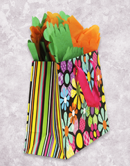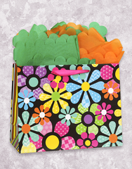 Head back in time for some flower power with our Flower Pattern Power gift bag. This market size (13"x10"x5") is a matte finish bag with a classic satin ribbon style handle.