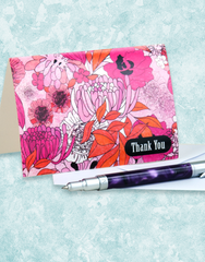 designed with you in mind. Say thanks with a burst of colorful flowers, this bold note card is printed with fun flowers in trendy pink and orange. Cards are