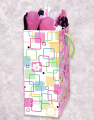 The bright and fun pattern on this gift bag will make the girl in your life giggle and laugh with delight. This market size (13"x10"x5") is a matte finish bag with a classic rope style handle.