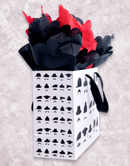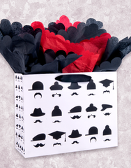 Our Hats and Mustaches Gift Bags feature fun black hats and coordinating mustaches from days gone by. These bags feature black glitter accents and black satin ribbon handles. Pairs well with our East Coast Scalloped Tissue Paper (T-304) collection.