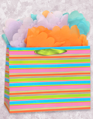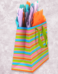 The colors of the tropics come alive in this bright bag..this bag screams get this party started. Matte finish with a satin handle it combines perfectly with our Hot Hues Tissue Collection T-032