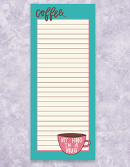 Don't forget a thing with our Hug In A Mug Shopping List Pads. These 3.75" x 9" list pads come in a package of 60 sheets, with a magnet for your convenience. They are perfect for all your notes.
