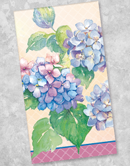 Beautiful watercolor hydrangea flowers in soft pinks, blues and purples will impress everyone at your next gathering. These 4.375" x 7.875", 3-ply guest towel napkins can be used as a dinner napkin or beautiful hand towel for the powder room.