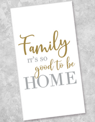 Welcome your guests with our It's So Good Family Guest Towel Napkins. These 4.375" x 7.875", 3-ply guest towel napkins can be used as a dinner napkin or lovely hand towel for the powder room.