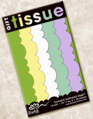 Make a splash in your gift bags with our fresh Limón Scalloped Tissue Collection. Our exclusive scalloped edge tissue is also great for paper crafts and special projects. The collection contains 24 sheets of quality tissue paper in 4 colors and white. Sheets measure 19" x 25" for a total of 79.17 square feet of tissue.
