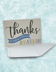 Our Making A Difference note cards are printed on a white uncoated stock. Includes white envelopes. These note cards are packaged in a set of 16. Great for you personal note writing or as a thoughtful gift.