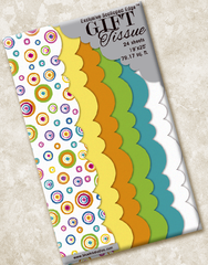 The bright, fun pattern in our More Party Circles Tissue Paper Collection will keep the party going all night long. This collection of exclusive scalloped edge tissue paper is also great for paper crafts and special projects. The collection contains 24 sheets of quality tissue paper includes a bright graphic multicolored circle pattern, 4 coordinating solid colors and white. Sheets measure 19" x 25" for a total of 79.17 square feet of tissue.