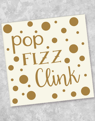 Our Pop Fizz Clink Beverage napkins will make the perfect addition for your next special event or everyday use. These 5" x 5" folded, 3-ply napkins are perfect for cocktails, hor d'oeuvres or dessert.