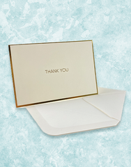 Our Simplistic Thanks note cards are printed on cream uncoated stock. Includes cream envelopes. These note cards are packaged in a set of 14. Great for you personal note writing or as a thoughtful gift.