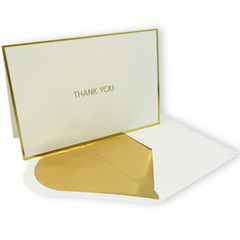 Our Simplistic Thanks thank you note cards are printed on a premium cream uncoated stock with gold foil accents. Includes matching cream envelopes with printed gold foil liner. These note cards are packaged in a set of 16. Great for your personal note writing or as a thoughtful gift.