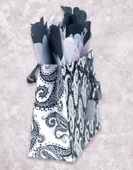 With a traditional paisley pattern our Striking Paisley gift bag is the perfect choice for anyone on your list. This market size (13"x10"x5") is a matte finish bag with flocking and a classic organza