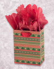 Our Sweater Weather gift bags will be the perfect addition to your gift this holiday season. This petite sized (6" x 7.5" x 3") is printed on a brown kraft finish, with red foil accents and a red grosgrain handle to match.