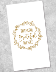 Welcome your guests with our Thankful Blessings Metallic Guest Towel Napkins. These 4.375" x 7.875", 3-ply guest towel napkins can be used as a dinner napkin or lovely hand towel for the powder room.