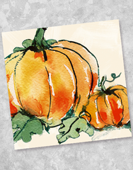 Our lovely Watercolor Pumpkins Beverage Napkins will be the perfect touch for that next special gathering. These 5" x 5" folded, 3-ply napkins are wonderful for cocktails, hor d'oeuvres or dessert.