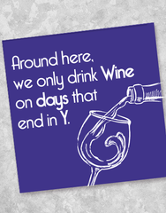 Everyone should drink wine on days that end in "Y". These 5" x 5" folded, 3-ply make a perfect cocktail napkin for your next event or to for any everyday use.