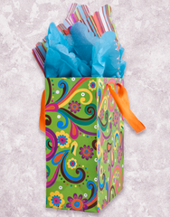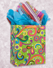 Vibrant, bold and trendy, our Young Paisley Gift Bags will set any gift apart with style! The hot hues and energetic swirls of this matte finish, garden size (10" x 12" x 5") gift bag are accented with pink glitter and an orange satin handle. Finish off the wow-factor of your gift ensemble with our Ooo La La Scalloped Tissue Paper (T-250) collection.