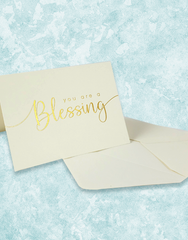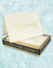 Our You're A Blessing note cards are printed on a cream uncoated stock, with gold foil accents and a cream envelope. These note cards are packaged in a set of 14. Great for you personal note writing or as a thoughtful gift.