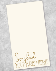 Our You're Here Guest Towel Napkins will make the perfect addition to your next special gathering. These 4.375" x 7.875", 3-ply guest towel napkins can be used as a dinner napkin or lovely hand towel for the powder room.