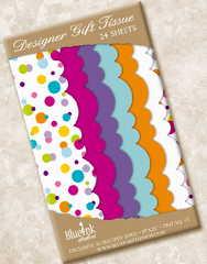 Spice up your gift bag with our Yummy Dots Collection. Our exclusive scalloped edge tissue paper is also perfect for paper crafting and card making. The collection contains 24 sheets of quality tissue paper includes a bright graphic dot pattern, 4 coordinating solid colors and white. Sheets measure 19" x 25" for a total of 79.17 square feet of tissue.